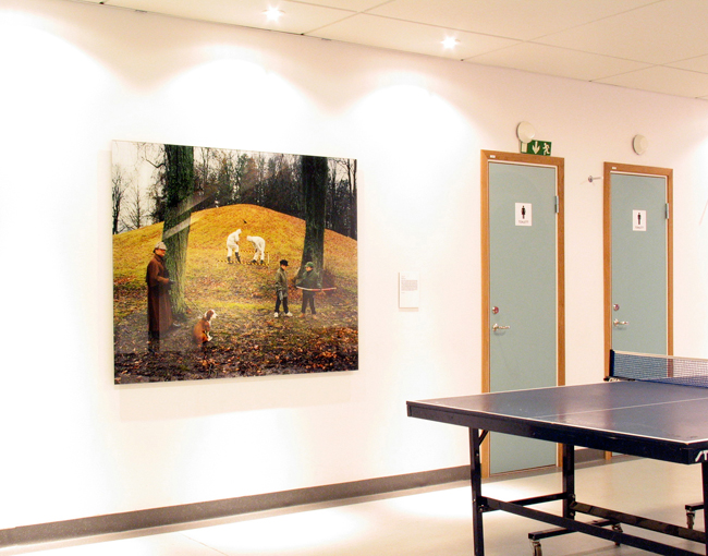 A series of photographs taken in the nearby area visualize several scenes that relate to the specific placement of the school building as well as different places surrounding the school. ”I have read about Botkyrka in history books and spoken with teachers at Hammerstaskolan who are very familiar with the history of Botkyrka. Furthermore, I have chosen places and stories which I found interesting and possible to transform into contemporary photography.”
